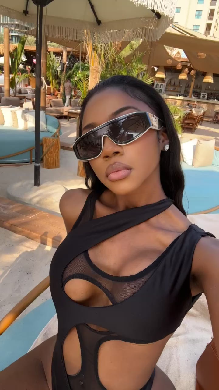 Black stretch cut out swimsuit.